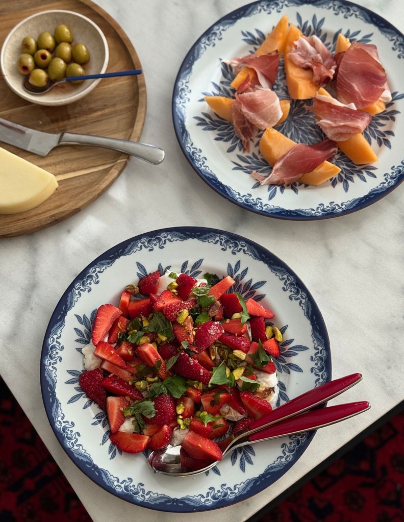 Mansikka-burratasalaatti sopii niin kesäjuhliin grilliruokien kylkeen, noutopöytään tai perjantai-illan aterian alkuun.